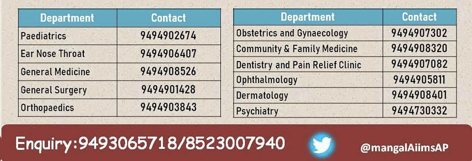 Address: AIIMS MG Campus, Mangalagiri, Guntur District Andhra Pradesh - 522503